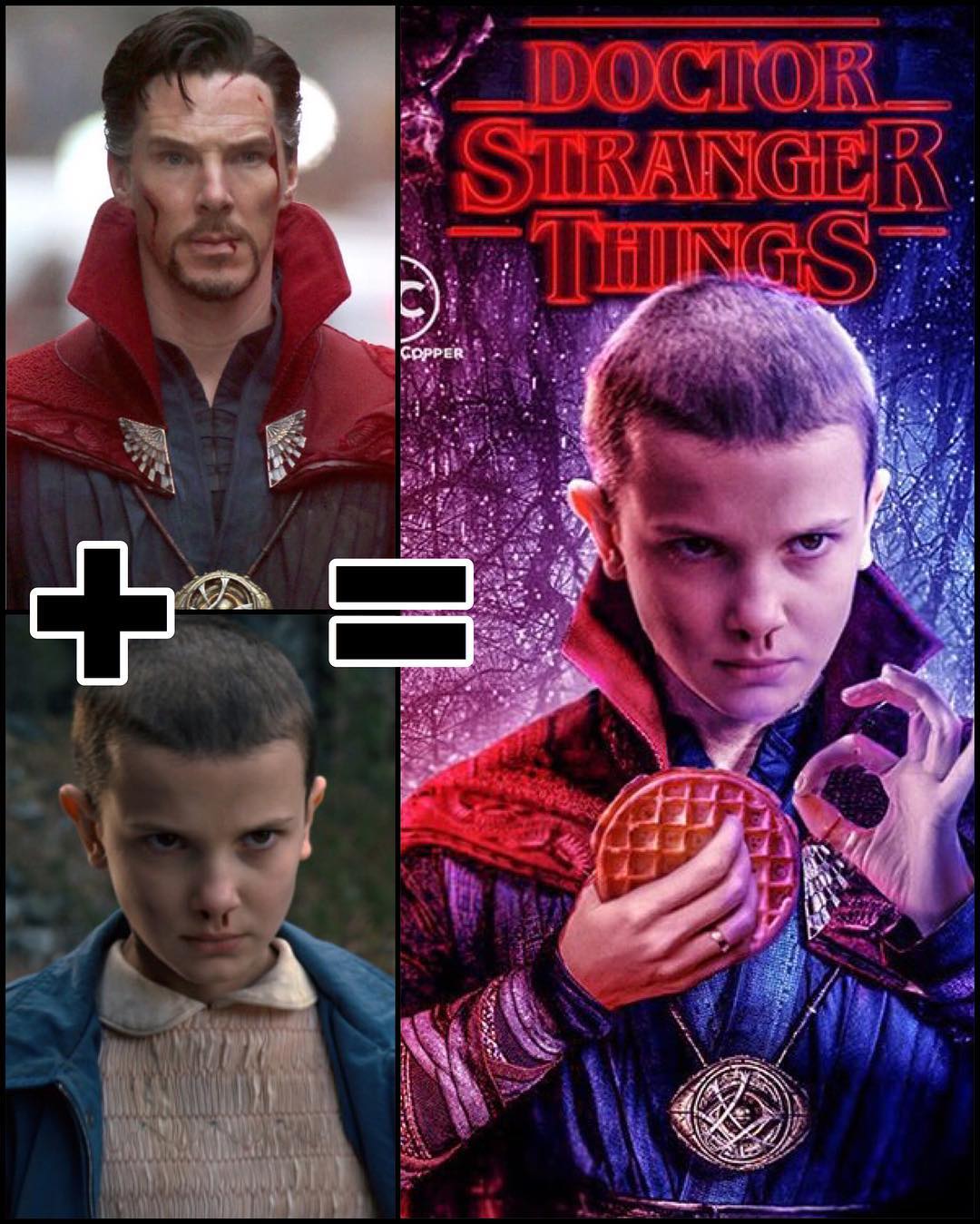 當《奇異博士》(Doctor Strange)的史傳奇遇上《怪奇物語》(Stranger Things)的Eleven,會擦出什麼火花?兩人的共同點除了主演的英文片名都有「Strange」字樣,他們都具有超乎非凡人的能力,得以自由在不同空間裡穿梭。無怪乎網友硬是把兩人湊在一起,沒想到PS後的效果意外驚人,竟然毫無違和!